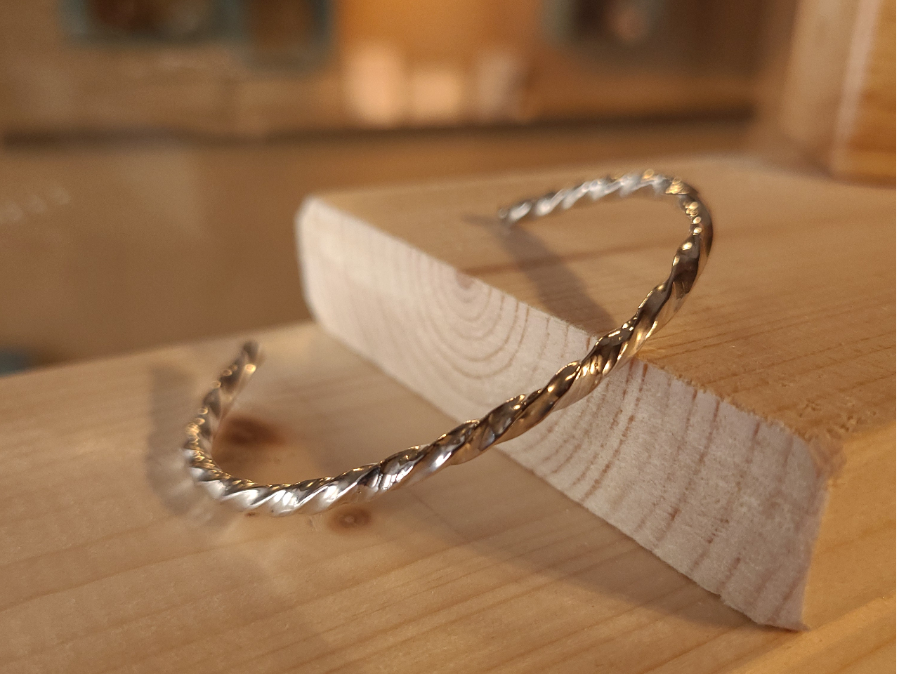 【6】お客様に腕輪の形に曲げて頂きます。仕上げはスタッフが整えて完成