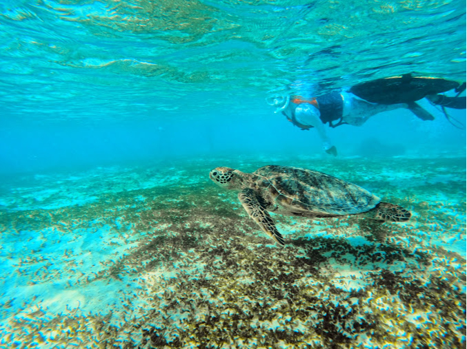 ガイド2名体制でのお出迎えですので、ドローン撮影中でも一人が側に、シュノーケル中は前後にガイドがいて安全に楽しんで頂けます。