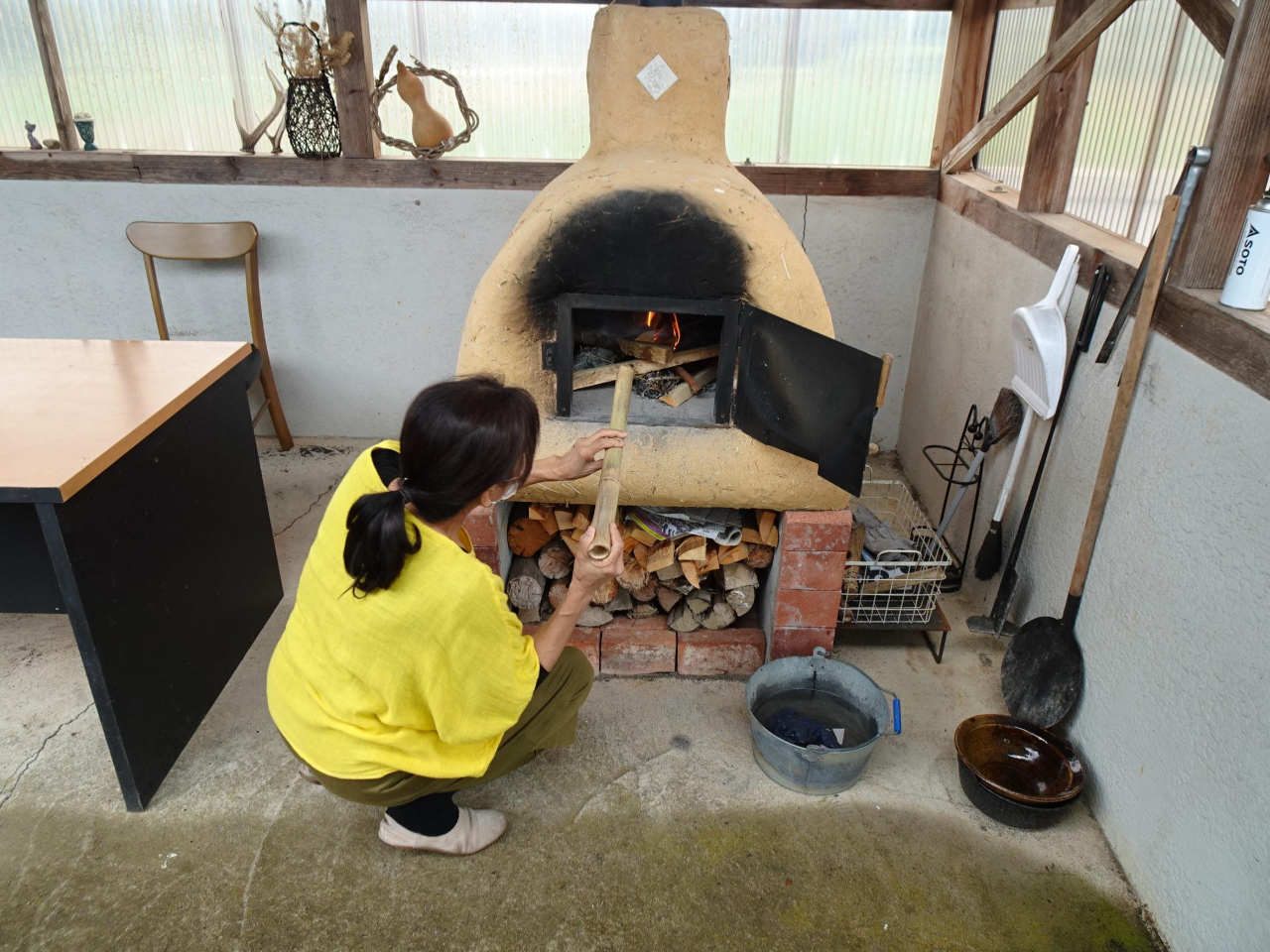 └薪から火起こしをして窯をあたためるところからやっていただく人気の体験です!