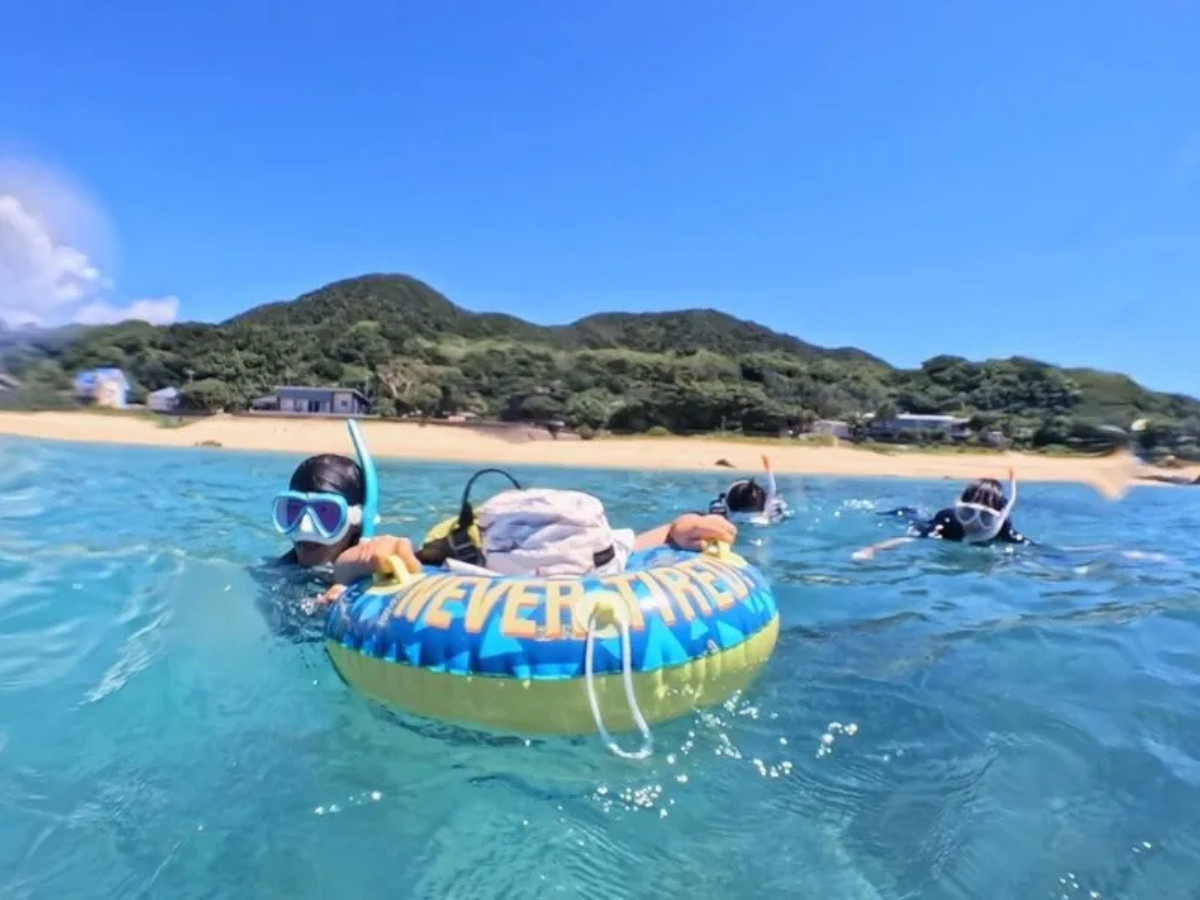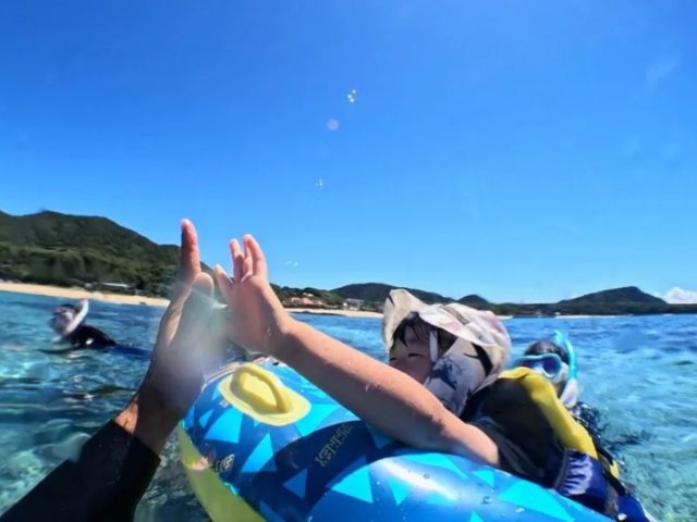 浮き輪に乗って海をのぞけば、おサカナたちが泳ぐ姿や、ゆったりと海中を漂うウミガメの姿がバッチリ見えます♪
