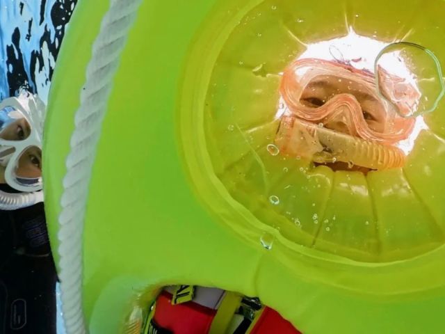 浮き輪に乗ったまま水中をのぞけるので、泳げないお子さんも安心!親子一緒に楽しめる工夫がいっぱいです。