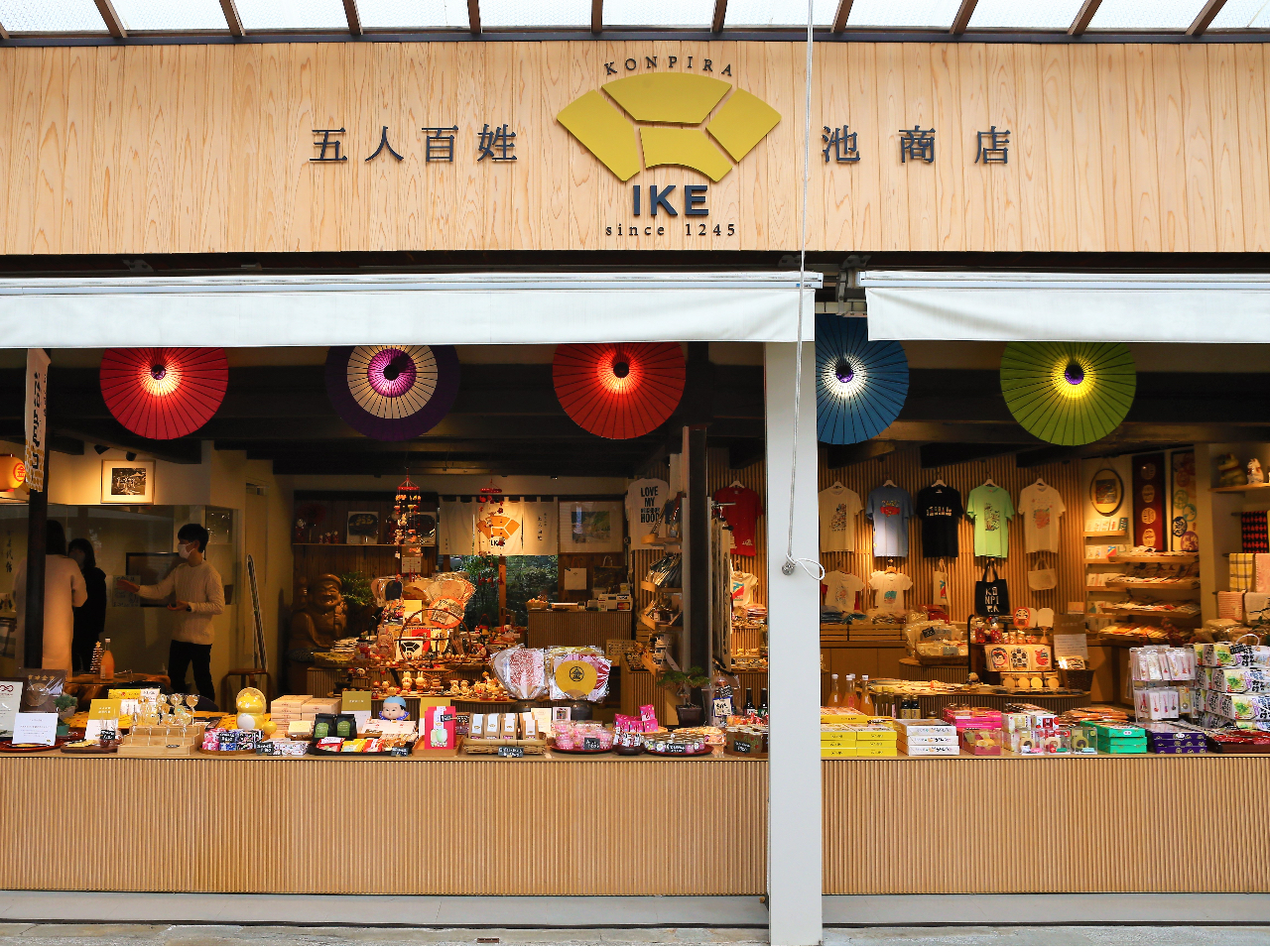 創業 寛元3年(1245年)五人百姓 池商店は金刀比羅宮境内で特別に商売を許されている、5軒のうちの1軒です。