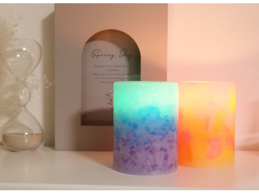 ・色とりどりのタイルを選んでカラフルなキャンドルを作成できます♪