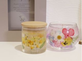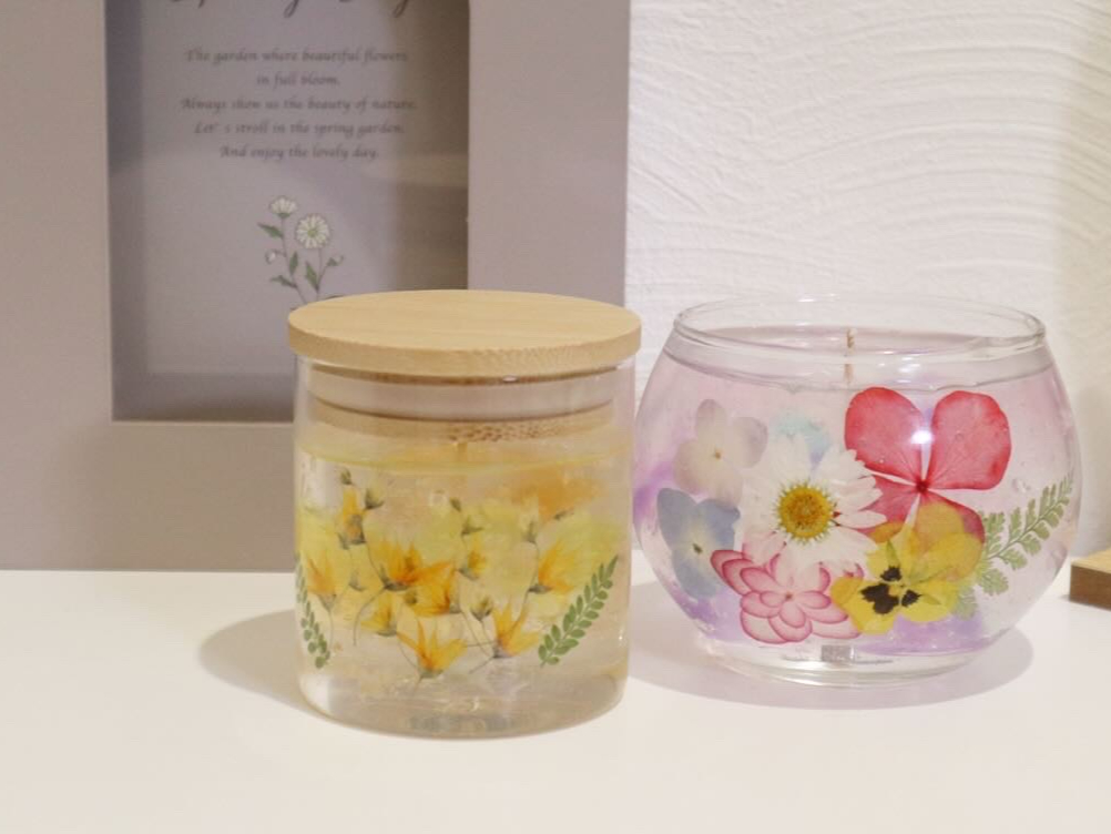 押し花と、ジェルの透明感がたまらないインテリアとしてもオススメのキャンドル