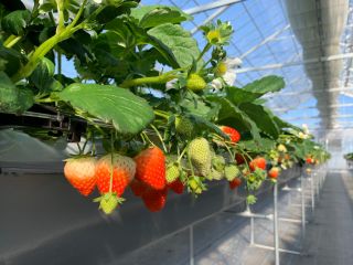 ・高設栽培&吊り下げベンチを設置して車いすやベビーカーの方もゆっくりお楽しみいただけます♪いちご狩り