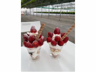 名取【いちごパフェ作り体験】自分で収穫したいちごでパフェ作り♪ 完成したパフェと記念撮影もお楽しみいただけます♪ ファミリー・カップル・女性におすすめ!