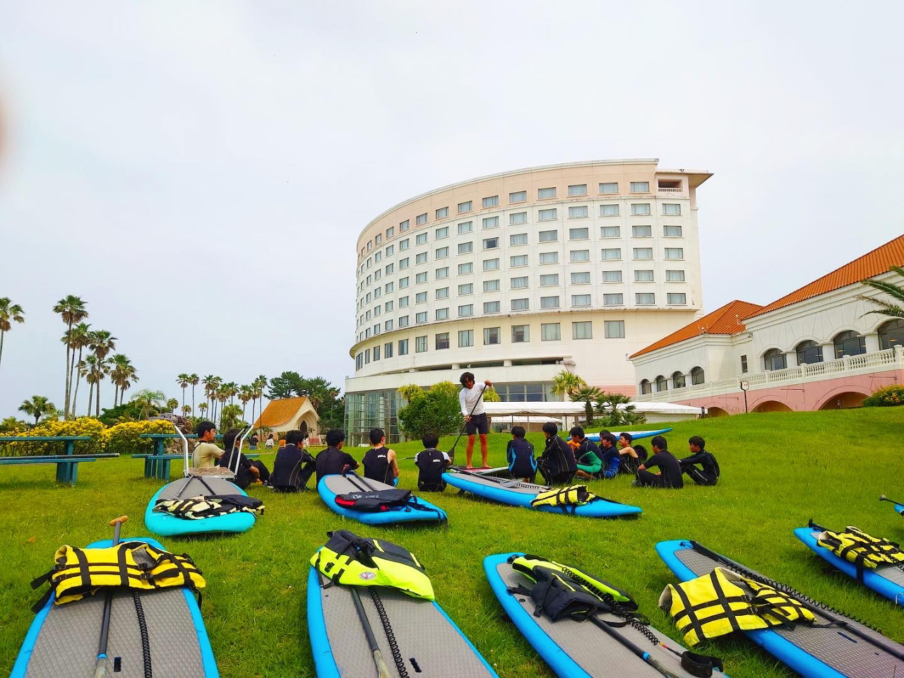 B9:45 体験スタート陸上でカヌー/SUPのレクチャー