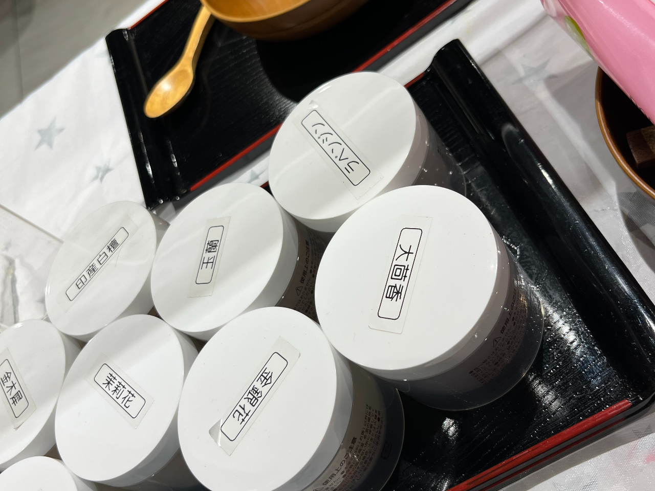 ・5〜8種類の天然100%の香原料からお好きな香りを1種類お選びいただけます。(5分)