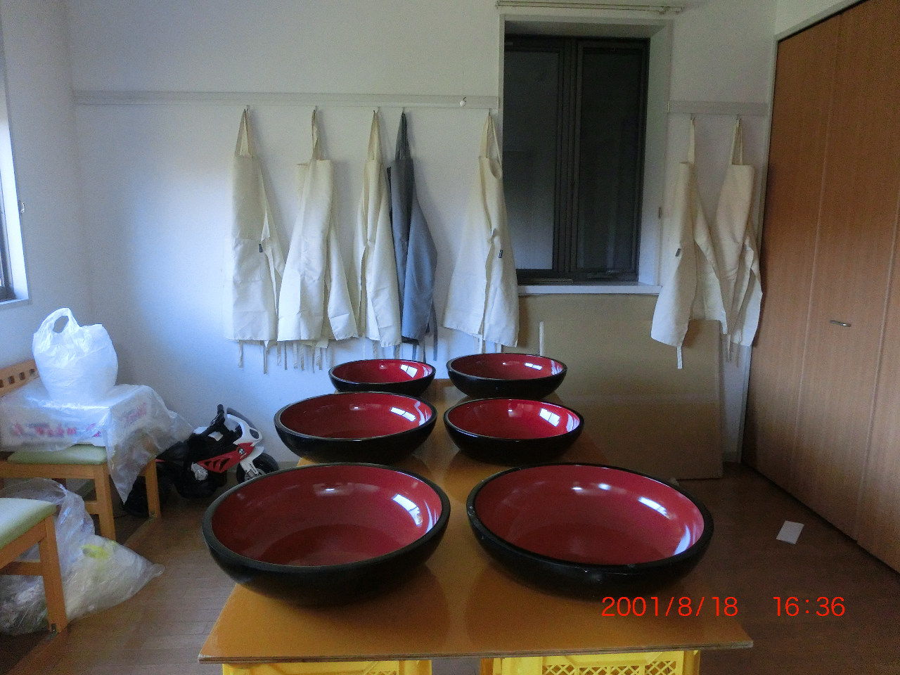 エプロン、三角巾、汚れてもいい服、持ち帰り用タッパ