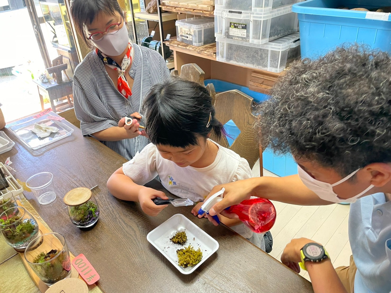 小6の息子が体験しました。苔についてもいろいろ教えていただき、勉強になりました。帰ってからも、かわいぃかわいぃと、食卓に置いて何度も眺めています。今度るり渓で、苔を見つけるのが楽しみです。ありがとうございました。