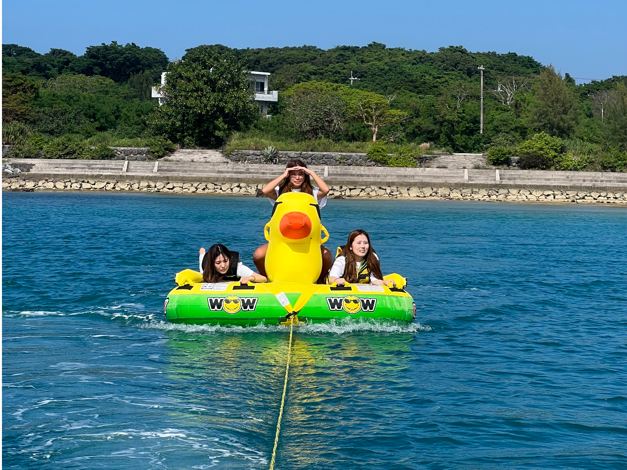 美しい沖縄北部の美しい海を身体で感じましょう!バナナボート・チュービング