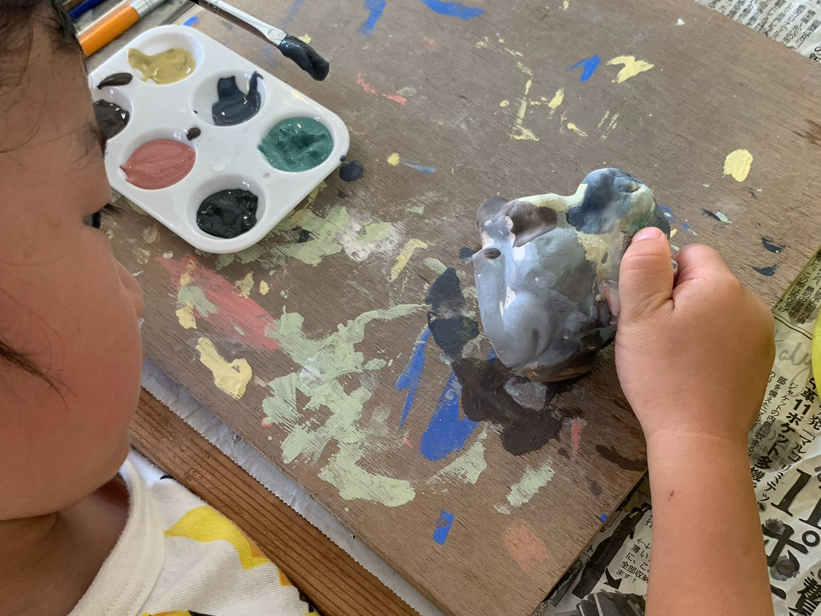 素焼きのカエルに、絵付けをする体験です!