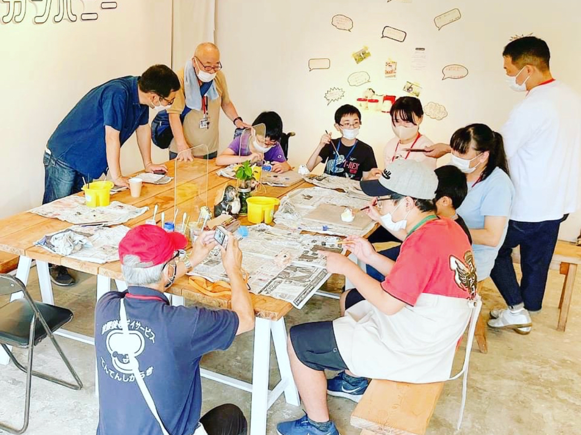 カエル絵付け体験風景