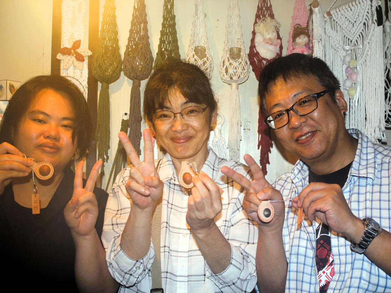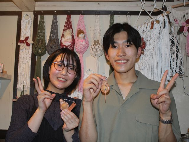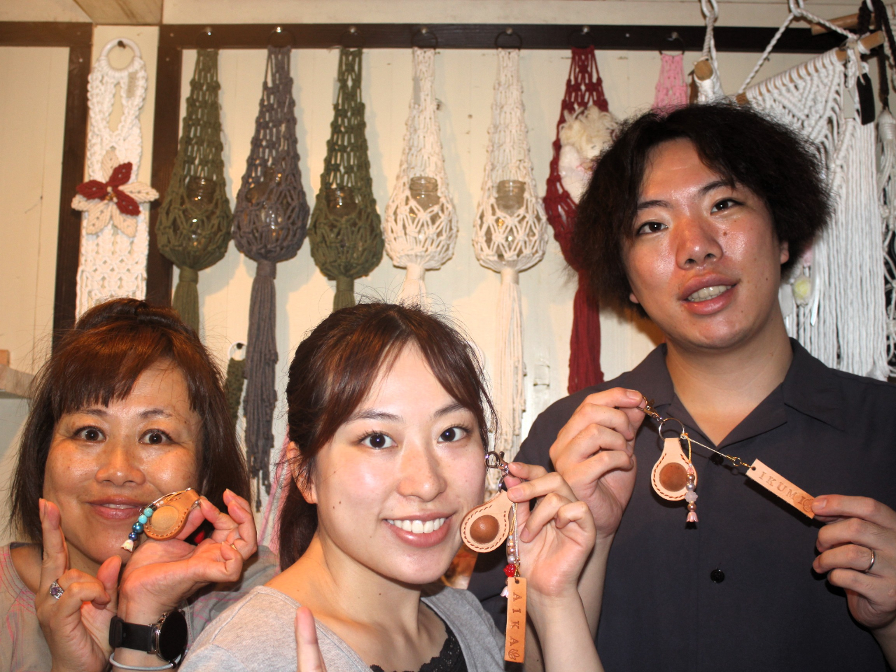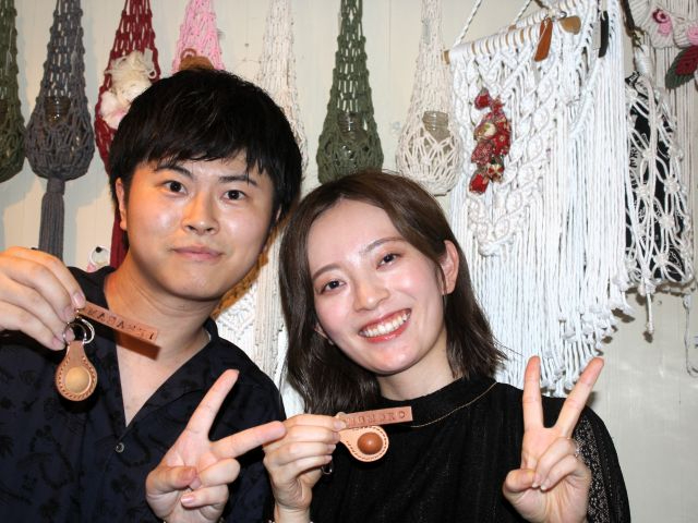 写真中のアイテムは(本体2200円)と(オプション 革製タグ6文字まで打刻可能 550円)の物です。体験者が12歳以下の場合は親御様の手伝いが必要です。
