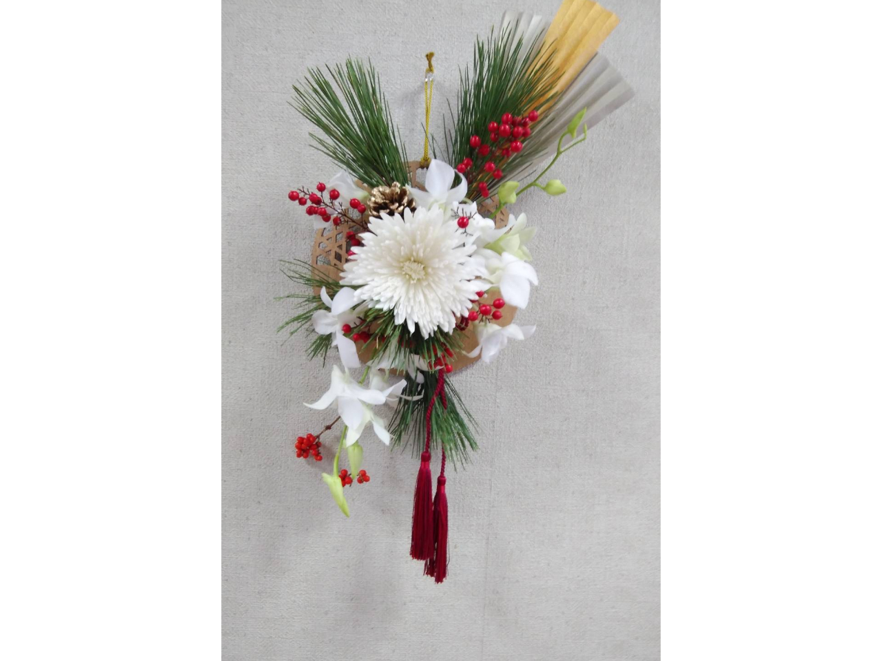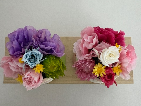 普段からよく買うであろう花材でのアレンジメントがメインです。見本もあり、イベントのアレンジでは飾りも用意してくださいます。
