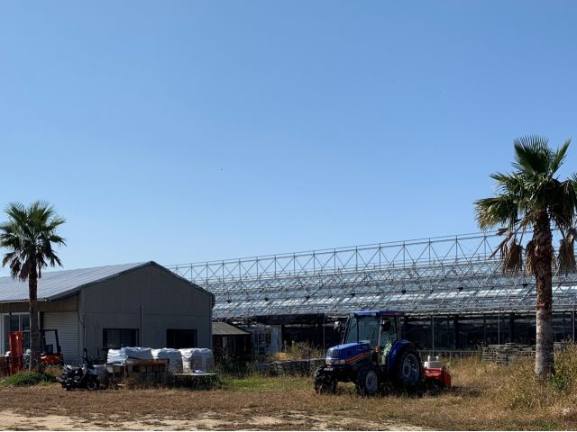糸島農園・志摩イチゴハウス受付棟(手前の左側の建物)と来春オープン予定のストロベリーハウス3番館
