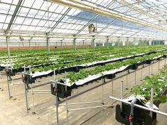 広いスペースに悠々と設置されたストロベリーハウス、1番人気の甘い「かおり野」、みずみずしい「恋みのり」、一部、少量ですが「さちのか」の、全3種類を栽培