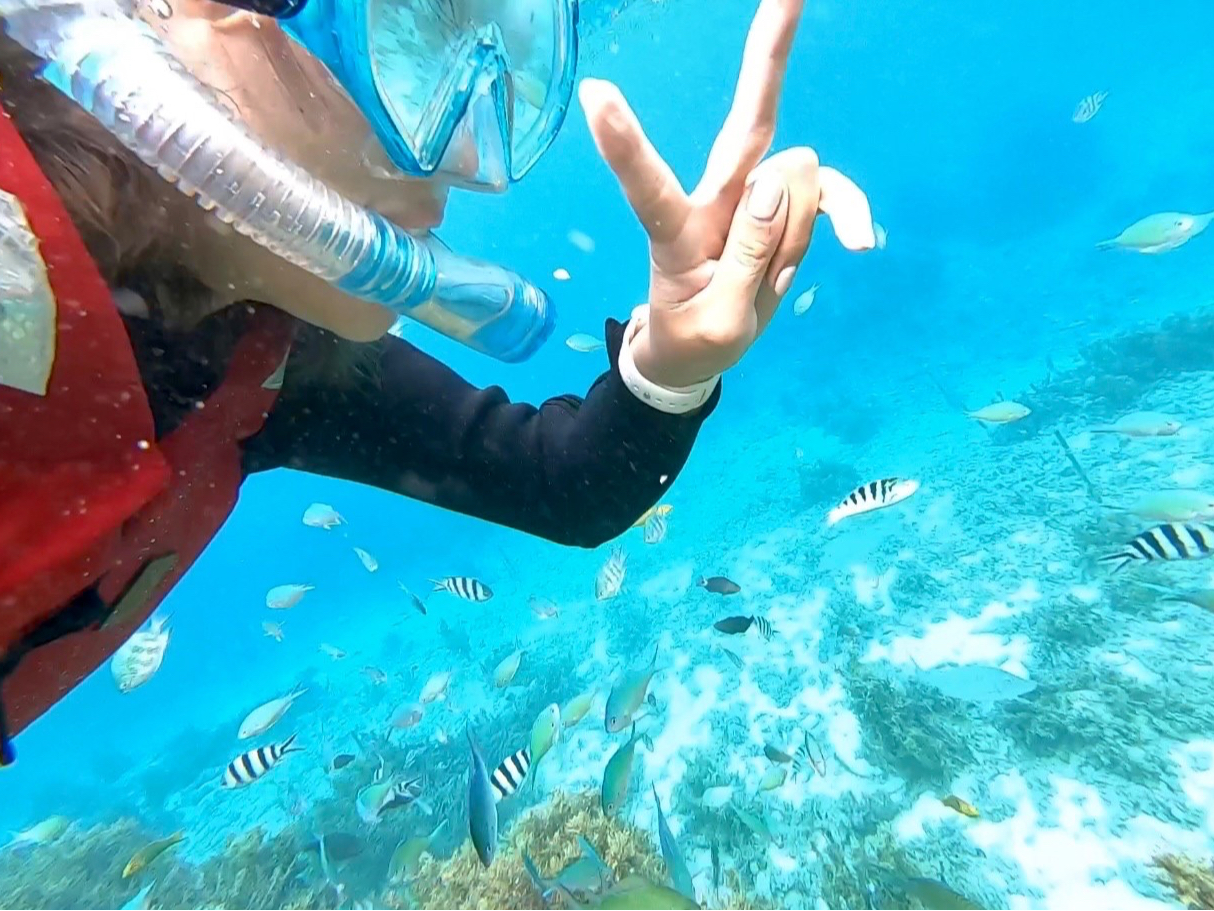 のどかな津堅島で休憩シュノーケリング・ボートシュノーケル