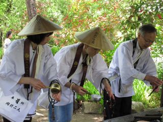 正式な歩き遍路を手軽に体験できるよう企画しました。白衣に菅傘に着替え、志度の門前町を歩き、お遍路体験していただきます。