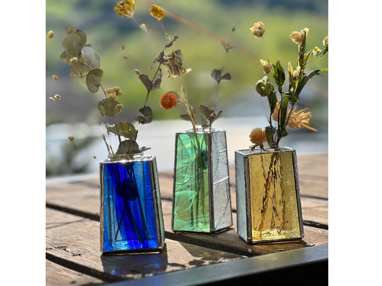 【NEWプラン! 昭和レトロガラスな一輪挿し♪】ステンドグラス体験教室 大人気のレアな昭和のガラスを使います。★オシャレ♪ ドライフラワーも生花も大丈夫♪ 女性に大人気♪ \初心者OK!/