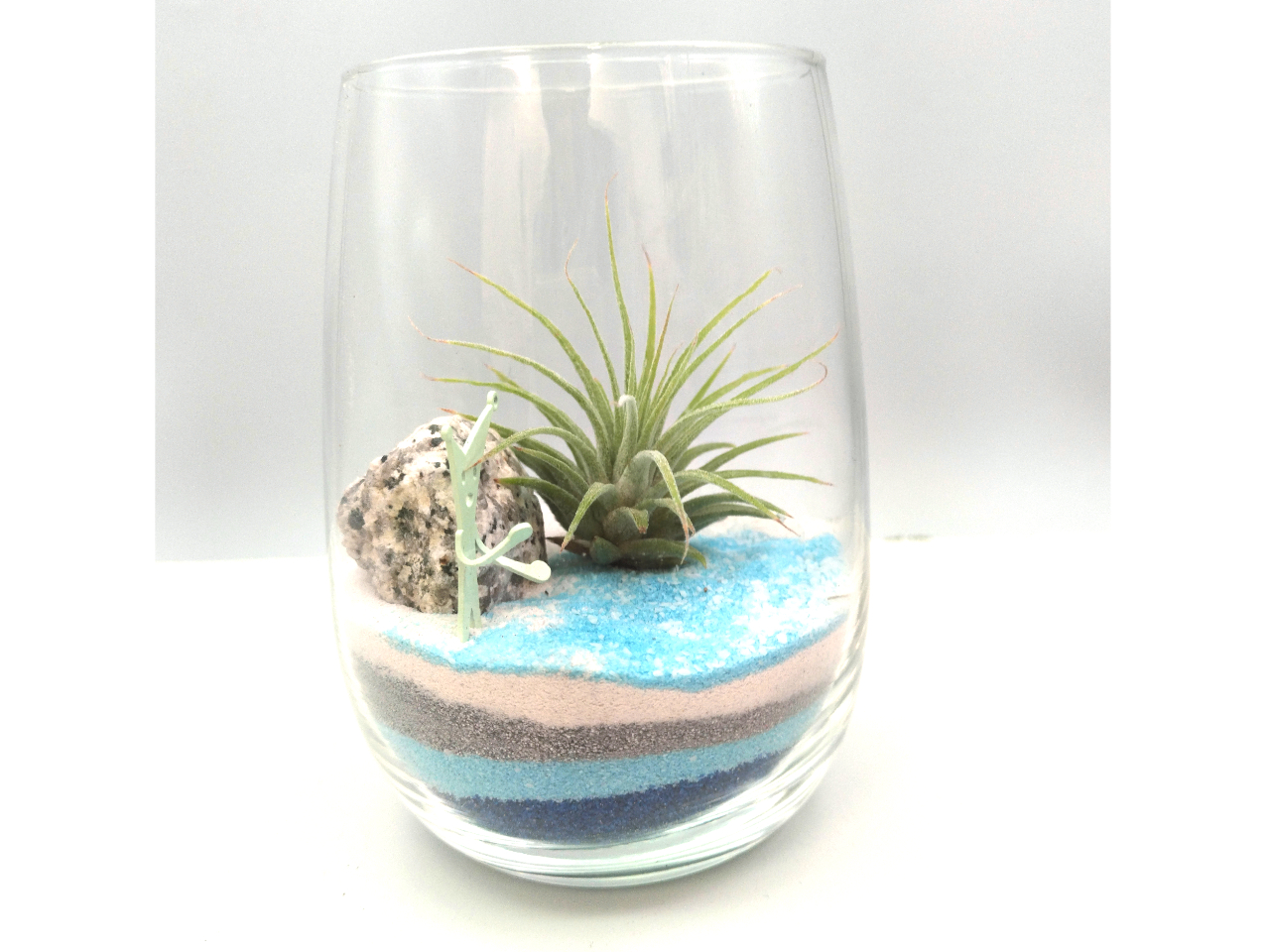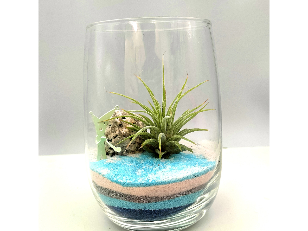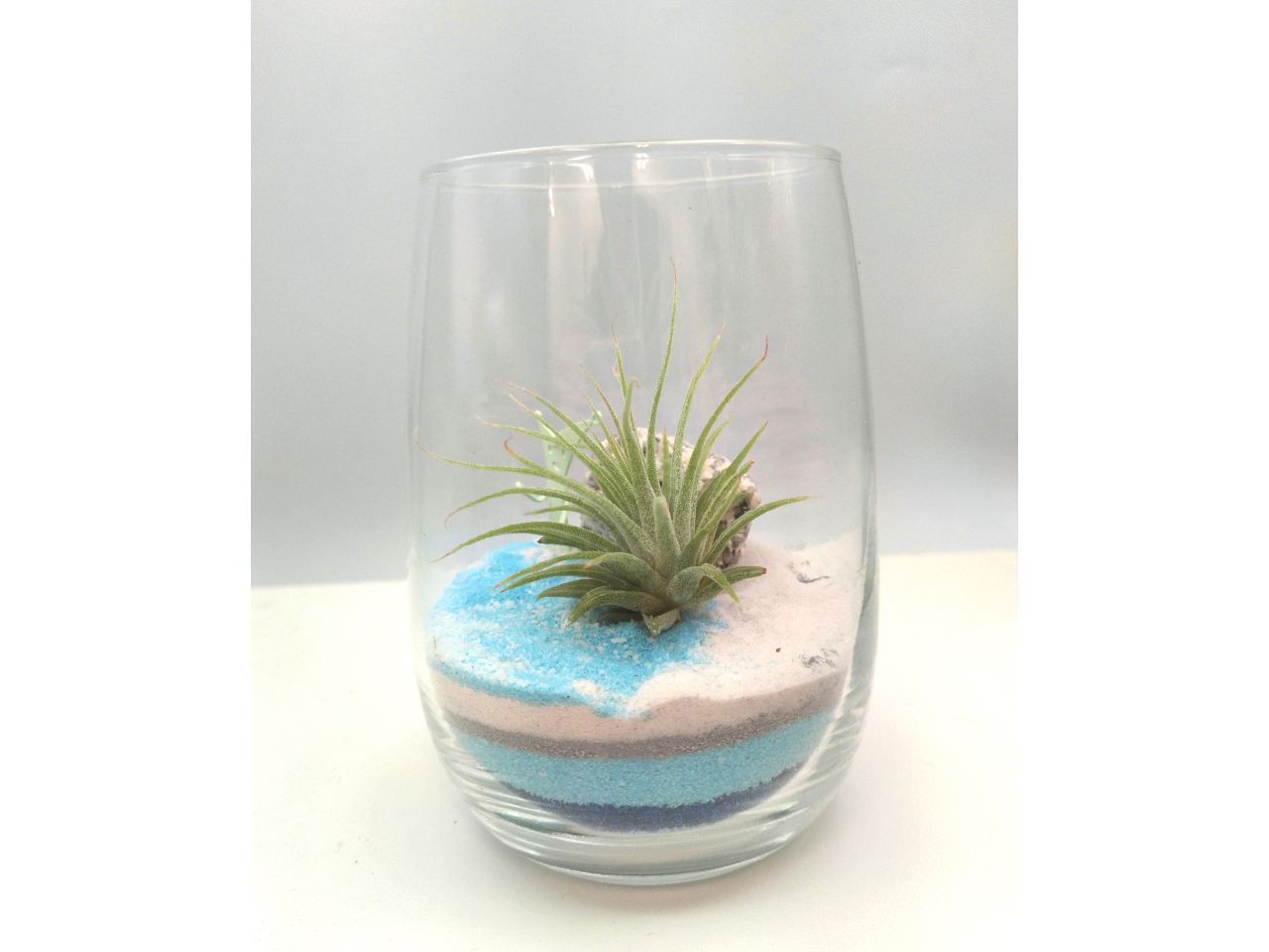 カラーサンドで砂模様を楽しみながら苔と多肉植物が成長する過程をお楽しみください。