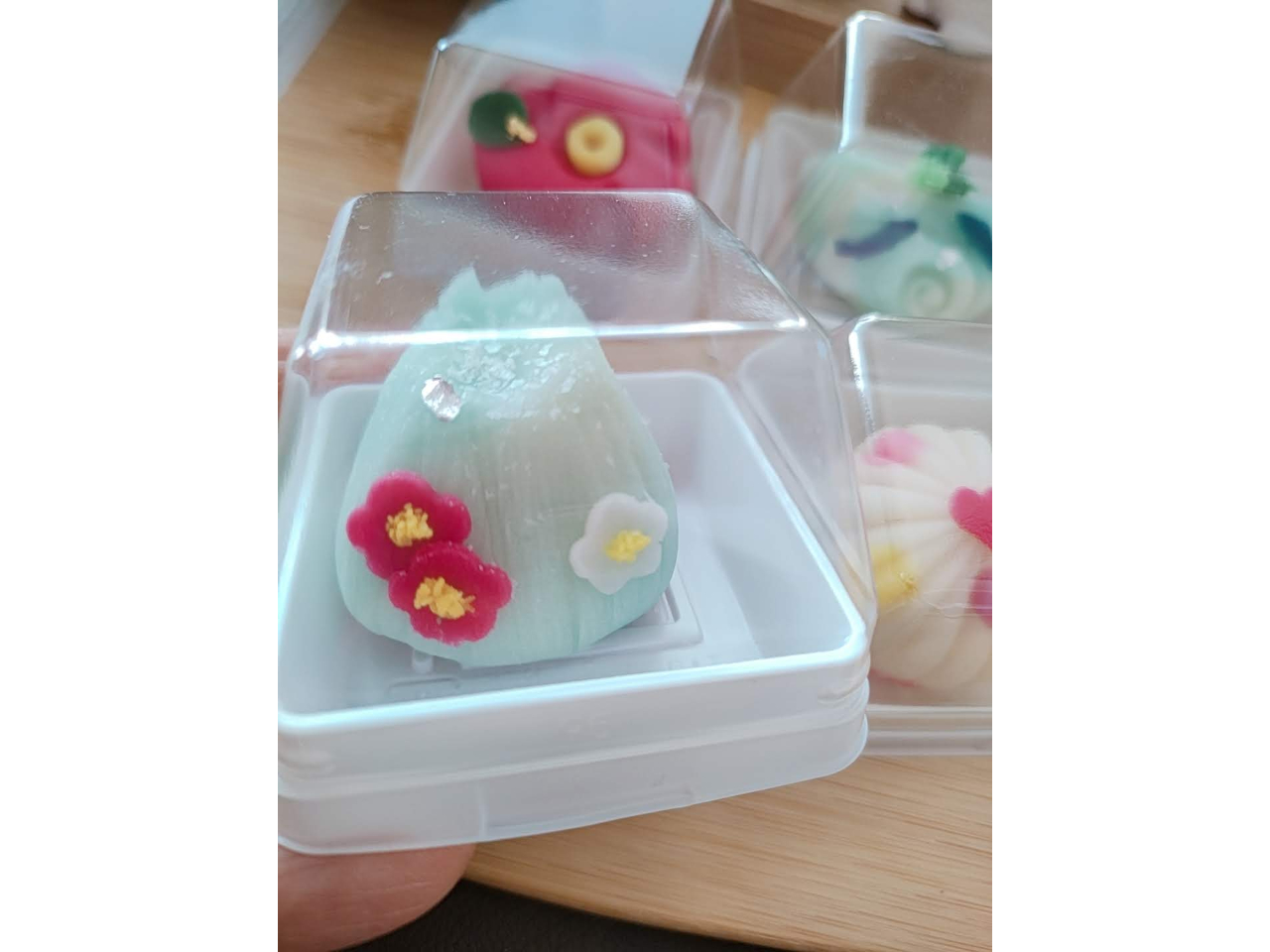 出来上がった練り切りは専用ボックスに入れてお持ち帰りいただけます。