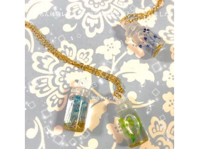 ペンダントサイズのガラスのボトルに、お好きな材料を入れて