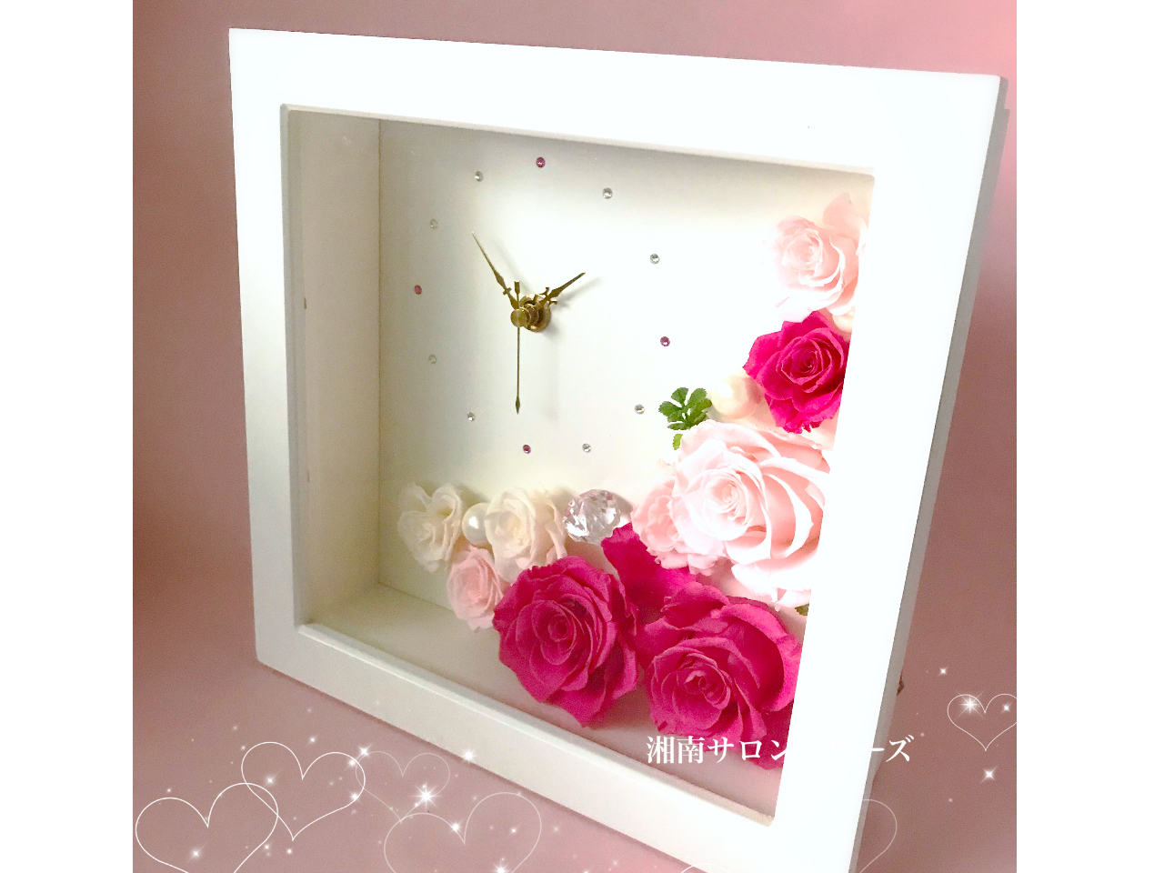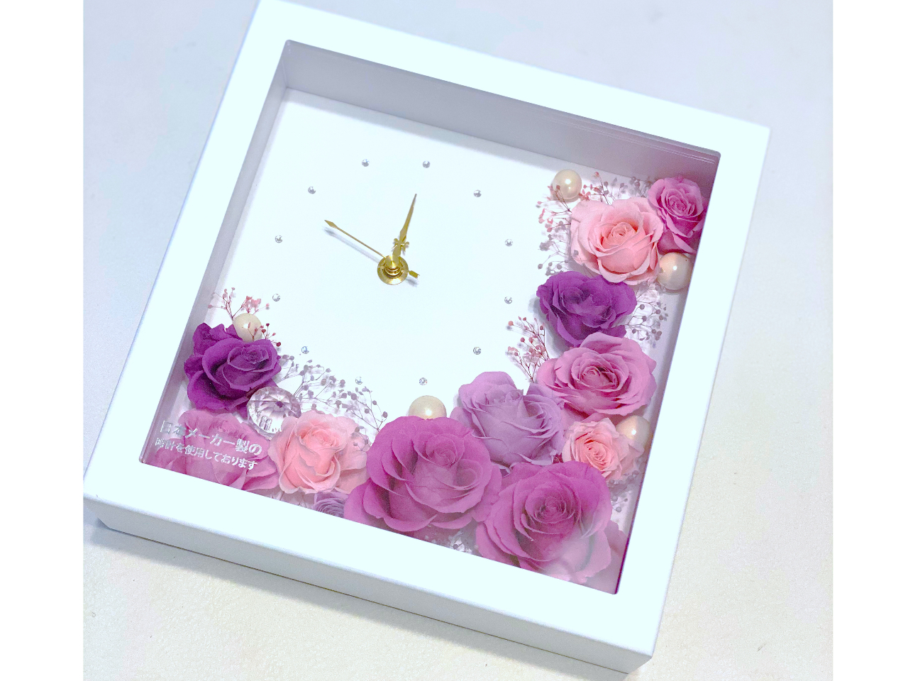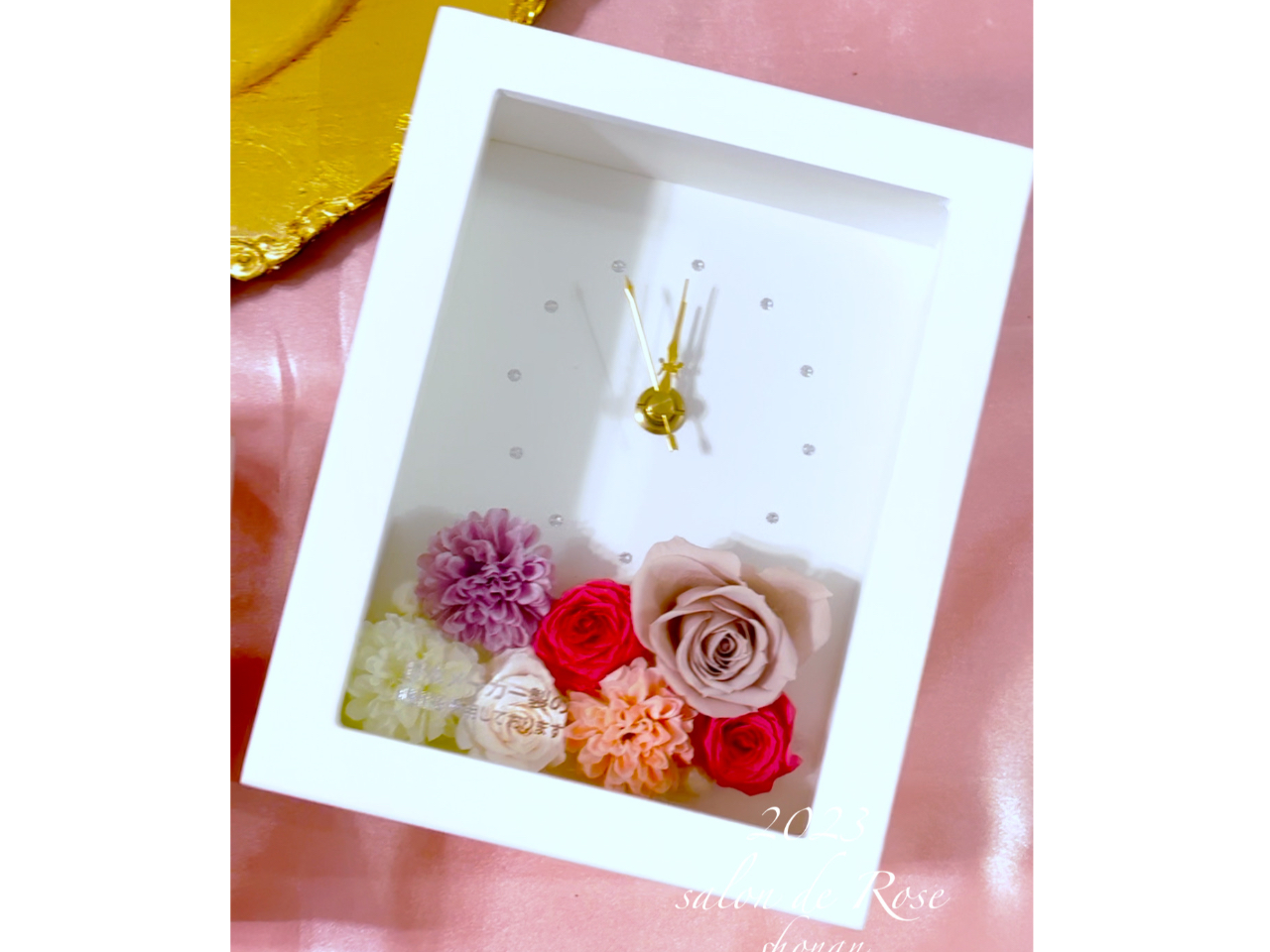 お好きな色合いでフラワー時計が作れます。プリザーブドフラワーを使用します。