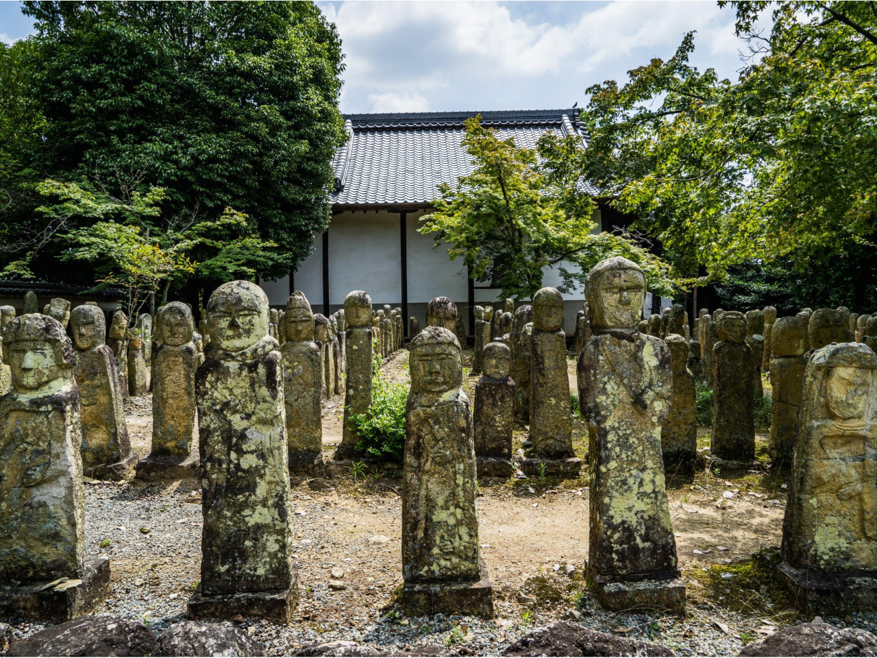 素朴で表情豊かなその姿は必ず親や子に似た顔があると言われています。江戸期に入った17 世紀初期に酒見寺の再興に伴う寺内整備や信仰・供養のために造立されたと考えられています。