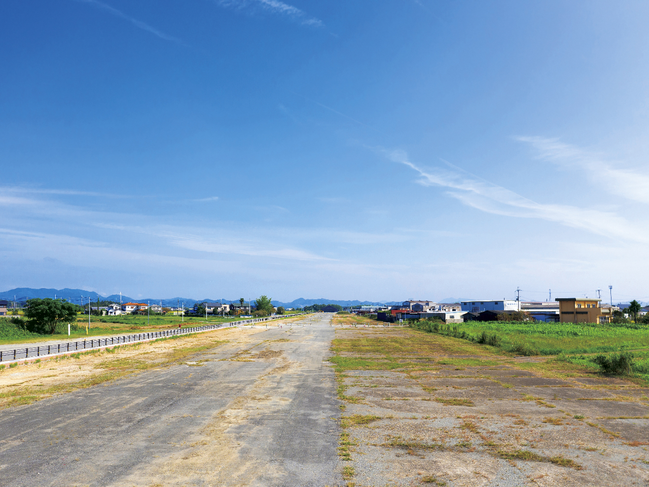 1,200m のコンクリート滑走路跡が当時のまま残る、全国でも貴重な戦争遺跡。「紫電」「紫電改」の試験飛行に使用されました。