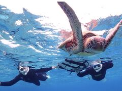 わいわいビーチでシュノーケリングウミガメツアーに参加しました。雨のち曇気温18度、ウエットスーツ着用で寒さは問題ありません。当方50代60代の高齢夫婦。マリンアクティビティは何度か参加したことがありますが、泳ぎ下手、体力なし。そんな私達に親切丁寧にレクチャーし、疲れていないか寒くないか、何度も確認してくれる気遣い100点満点のガイドさん。ポイントへの誘導は完璧で、おかげさまでばっちりウミガメを見ることができました。ツアー中に写真や動画をたくさん撮ってくれます。これがまためちゃくちゃ素敵!綺麗な画像をいっぱいプレゼントしてもらえます。数あるツアーの中からどちらにするか迷っている方がいらっしゃったら、間違いなくこちらのショップをおすすめします。また是非お願いしたいと思います。
