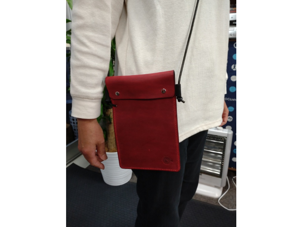 折りたたんで持ち運びに便利なショルダーストラップ付き!レザークラフト