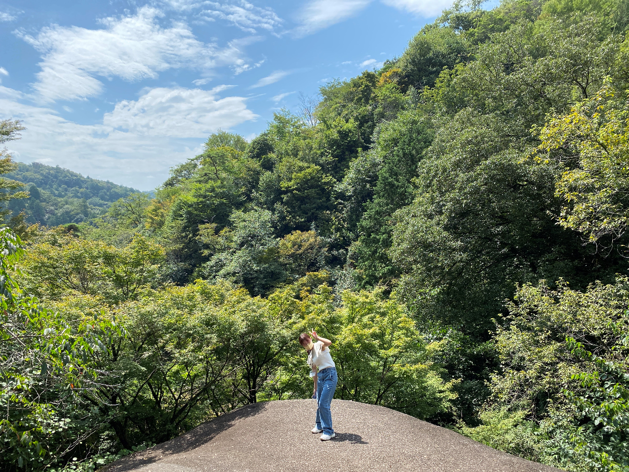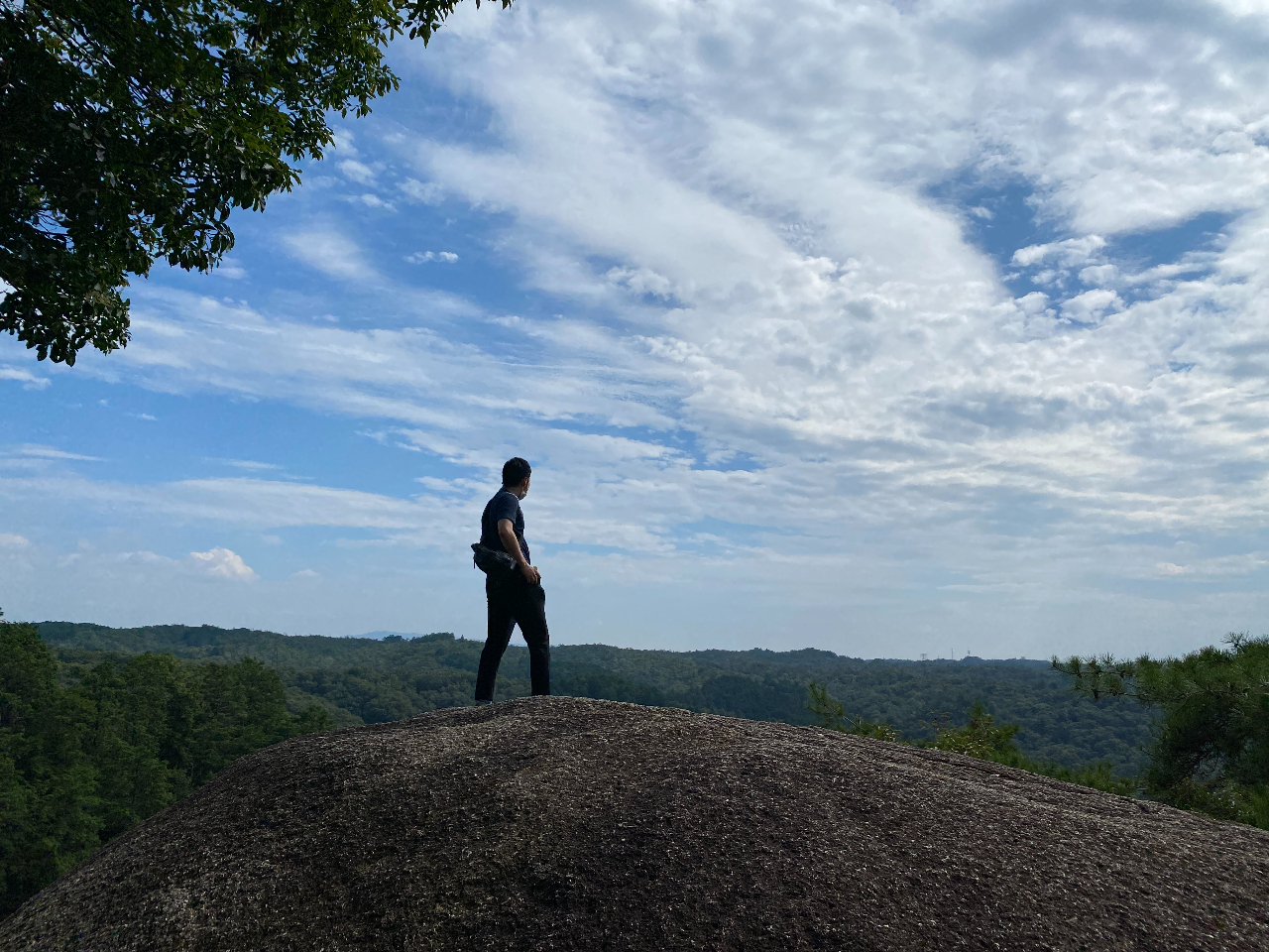 鬼岩公園名物の「岩穴くぐり」を体験できます。