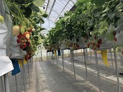 家族でいちご狩りに行ってきました。こちらの駐車場は広々としていて、車を停めるのもストレスなくできました。また、トイレは仮設でしたが、とても綺麗で清潔感がありました。スタッフの方々の配慮が感じられる良い体験でした。食べ頃のいちごがたくさんあり、甘くて美味しかったです。子供たちも大満足で、収穫したいちごをその場で食べる楽しさを存分に味わいました!