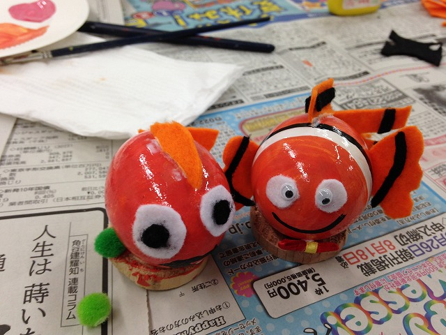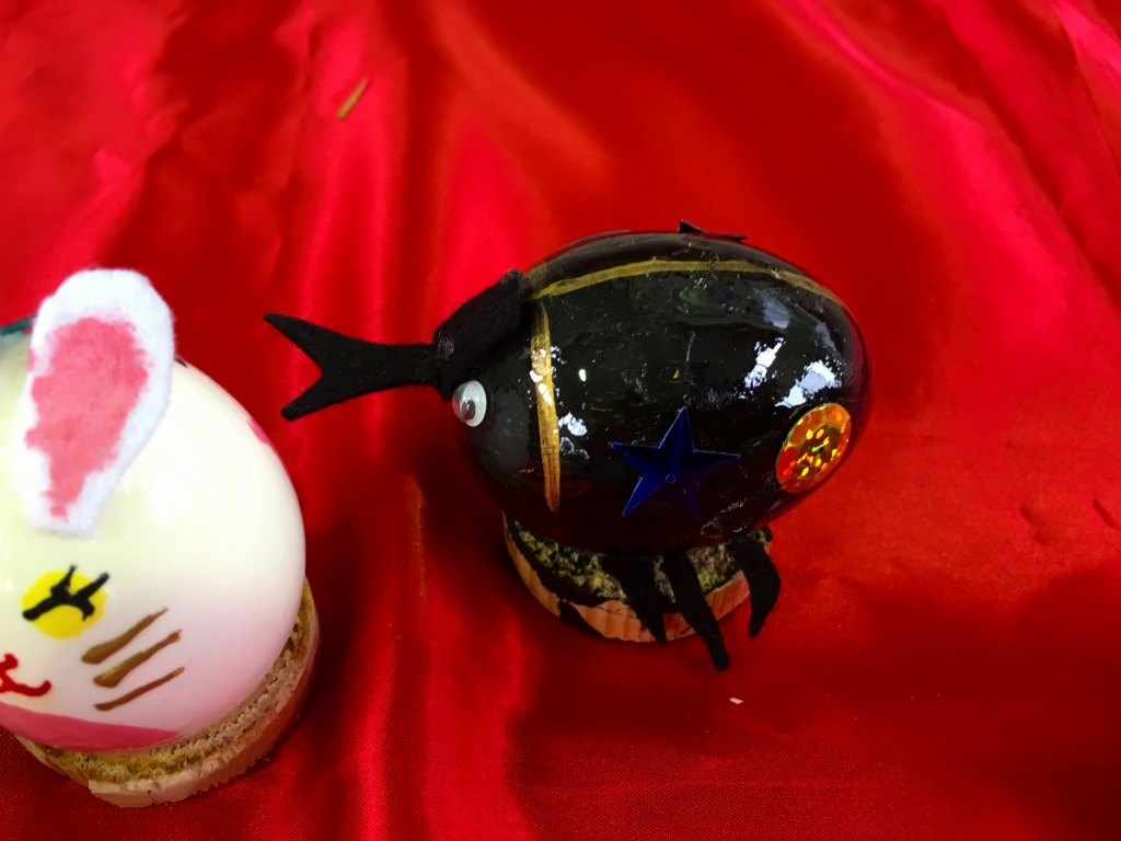 まるいたまごの殻で、作る方の発想でいかようにでも変化し個性的な楽しい作品が生まれます。年齢は4歳頃から80歳ぐらいまでどなたでも作る事が出来ます。