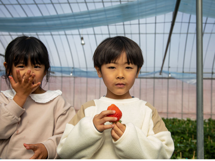 ▼自然の中ですくすくと育った美味しい「あまおう」食べ放題♪いちご狩り