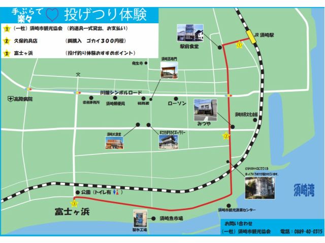 ・「富士ヶ浜」に行く行程で、餌(久保釣具店、 駐車場有)をお買い求めください(一
