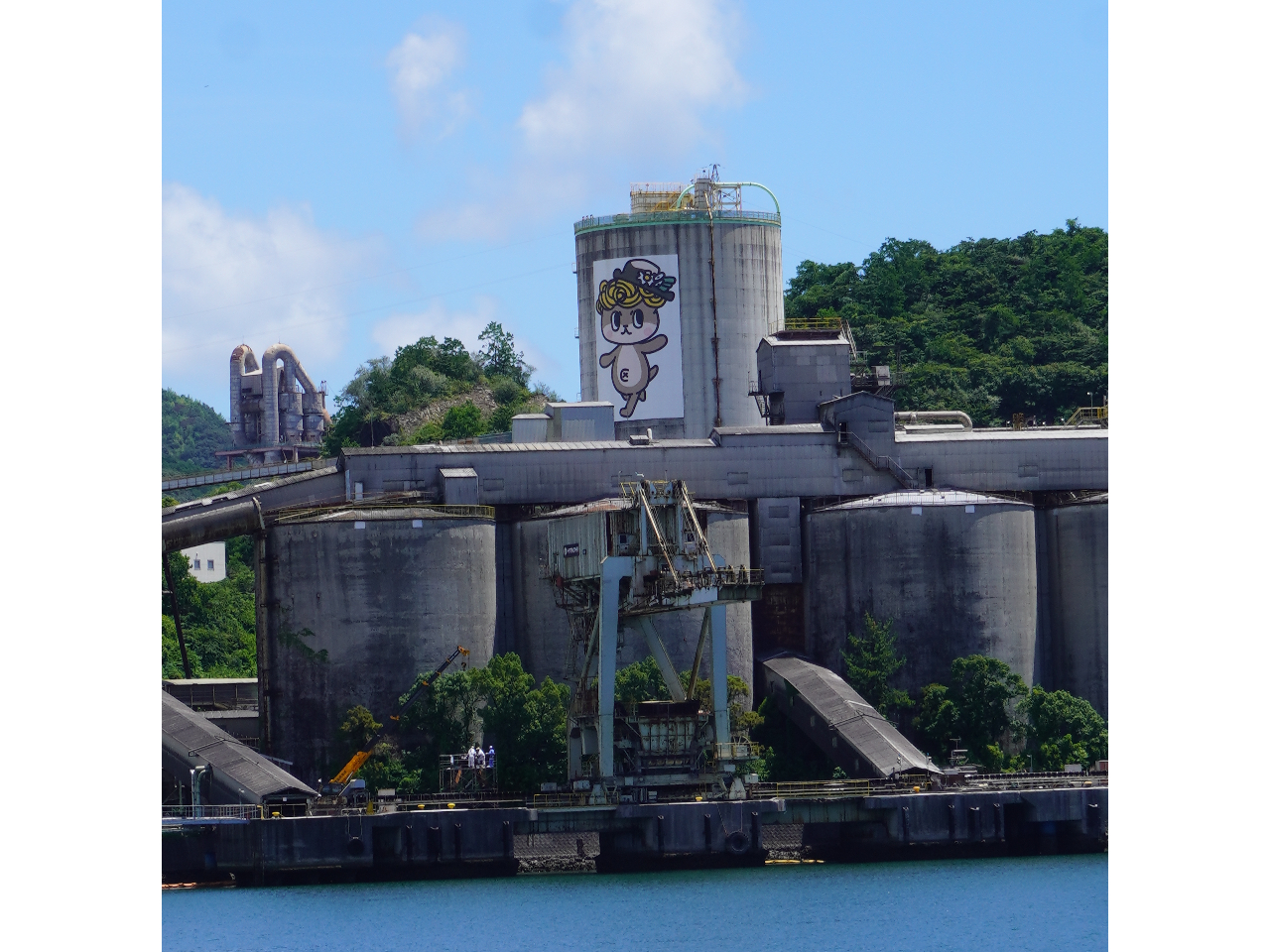 須崎港(須崎駅から約500m)。工場(住友大阪セメント)、山(蟠蛇森)をバックに風光明媚な「すさき」ならではの風景です。