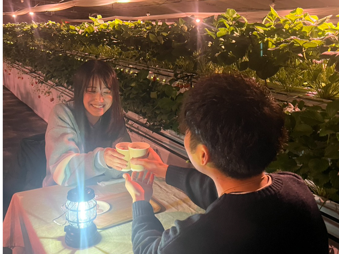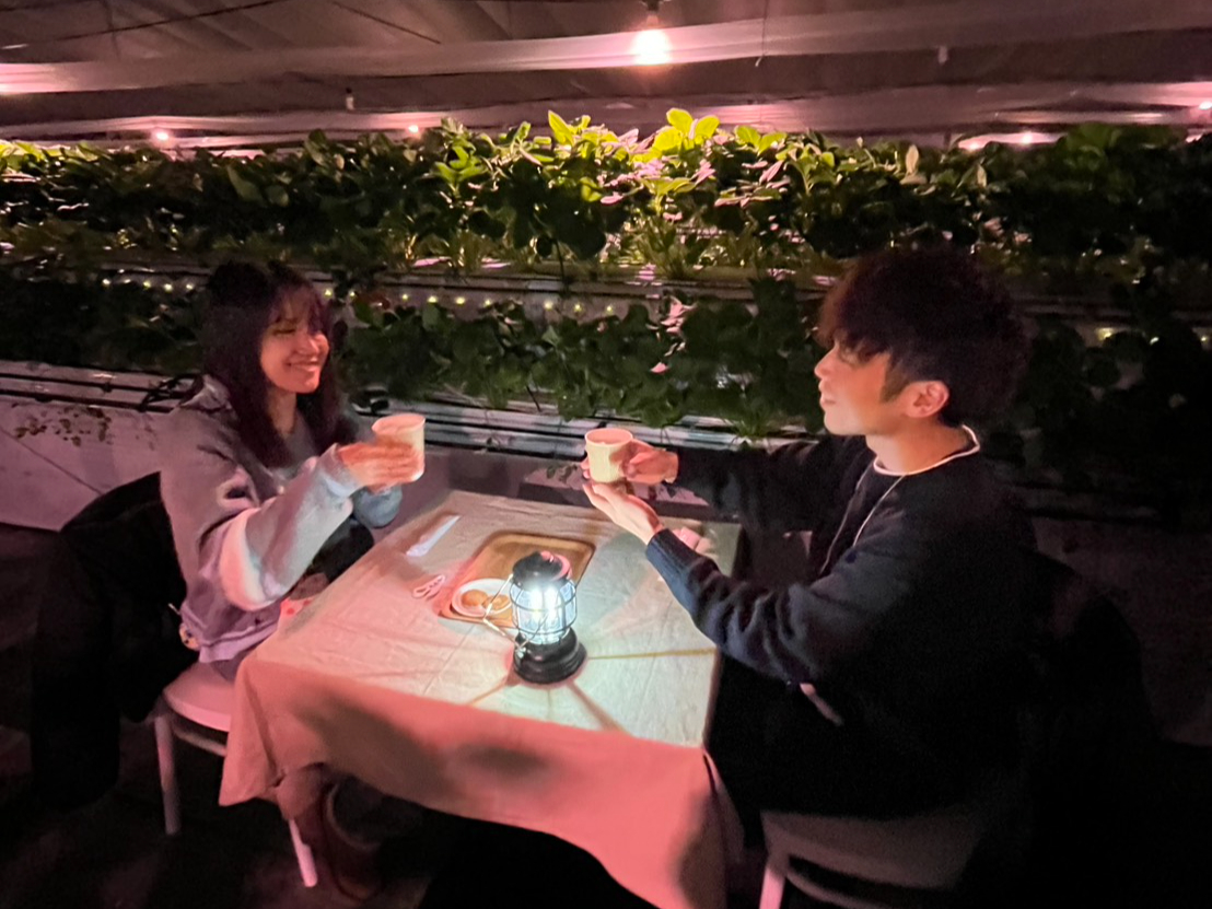 ここでしか体験できない、特別な夜のいちご時間。 昼とは違う“もうひとつのいちご狩り”をぜひ体験してみてください。