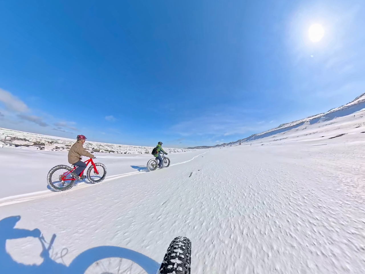 雪道や砂浜でも安定して走れる、極太タイヤを装着した自転車です。
