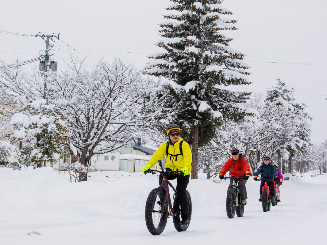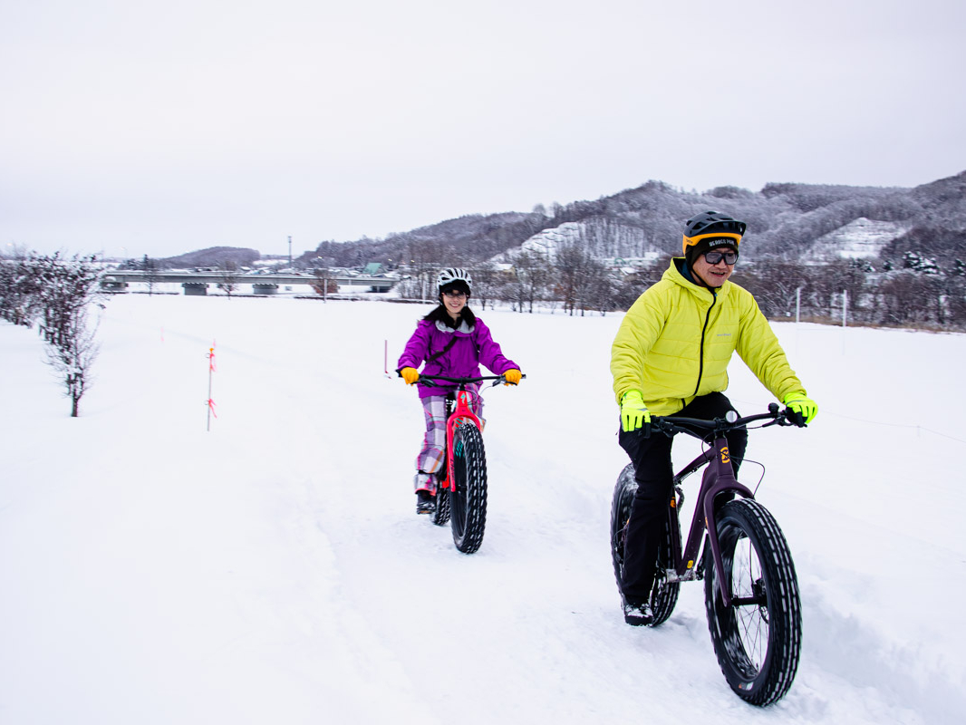 そのあとは河川敷サイクリングロードなど、整備された雪道を中心に、約20kmをFATBIKEでゆっくり走ります。