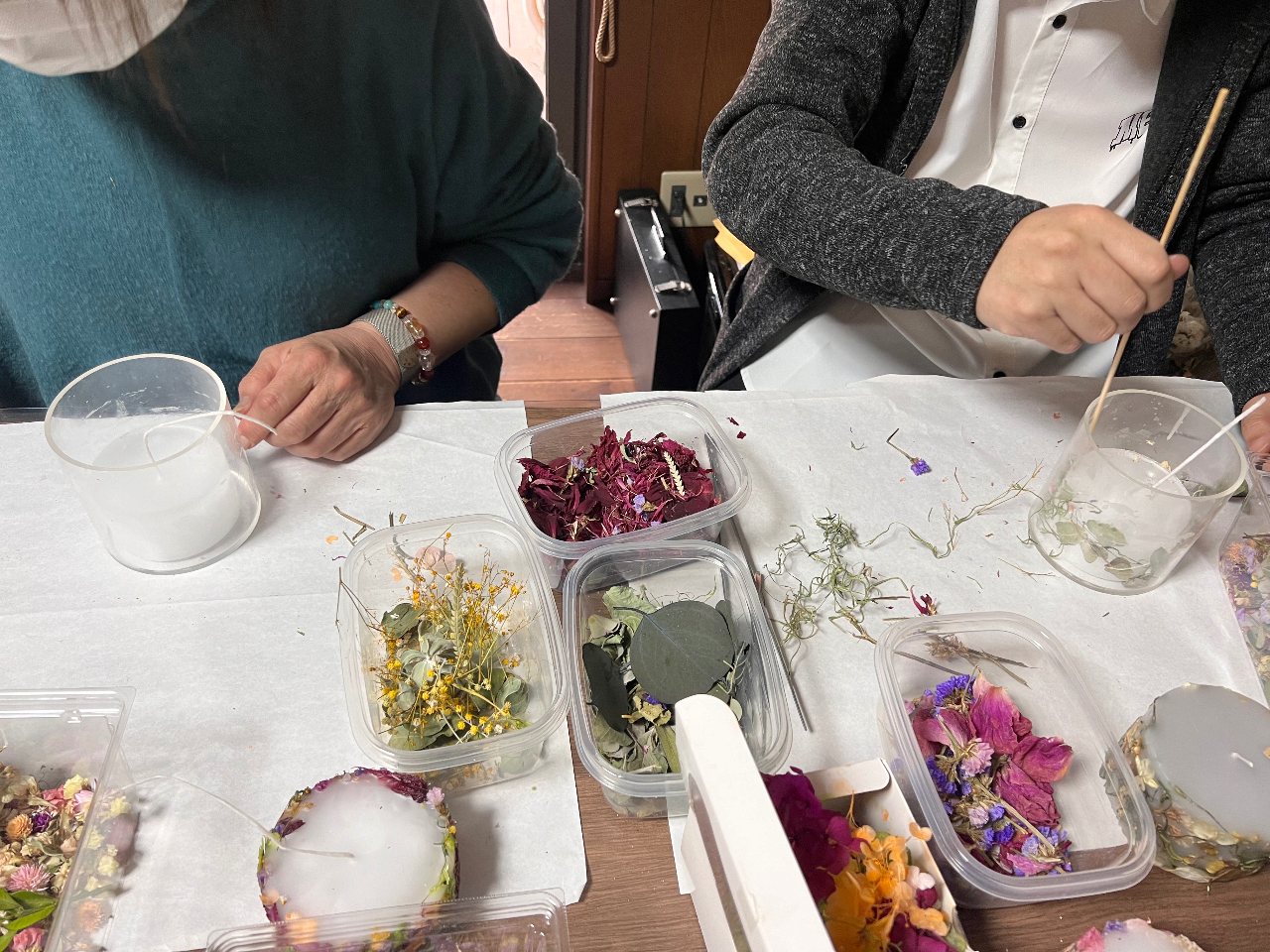 ドライフラワー専門ショップならではのたくさんのお花を使ったボタニカルキャンドル作り。