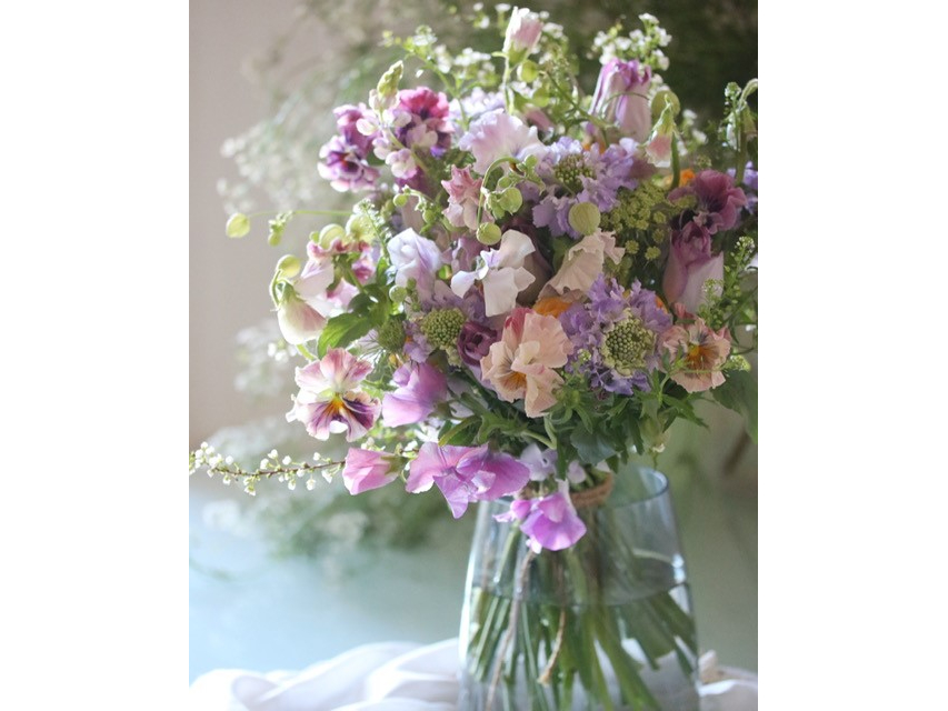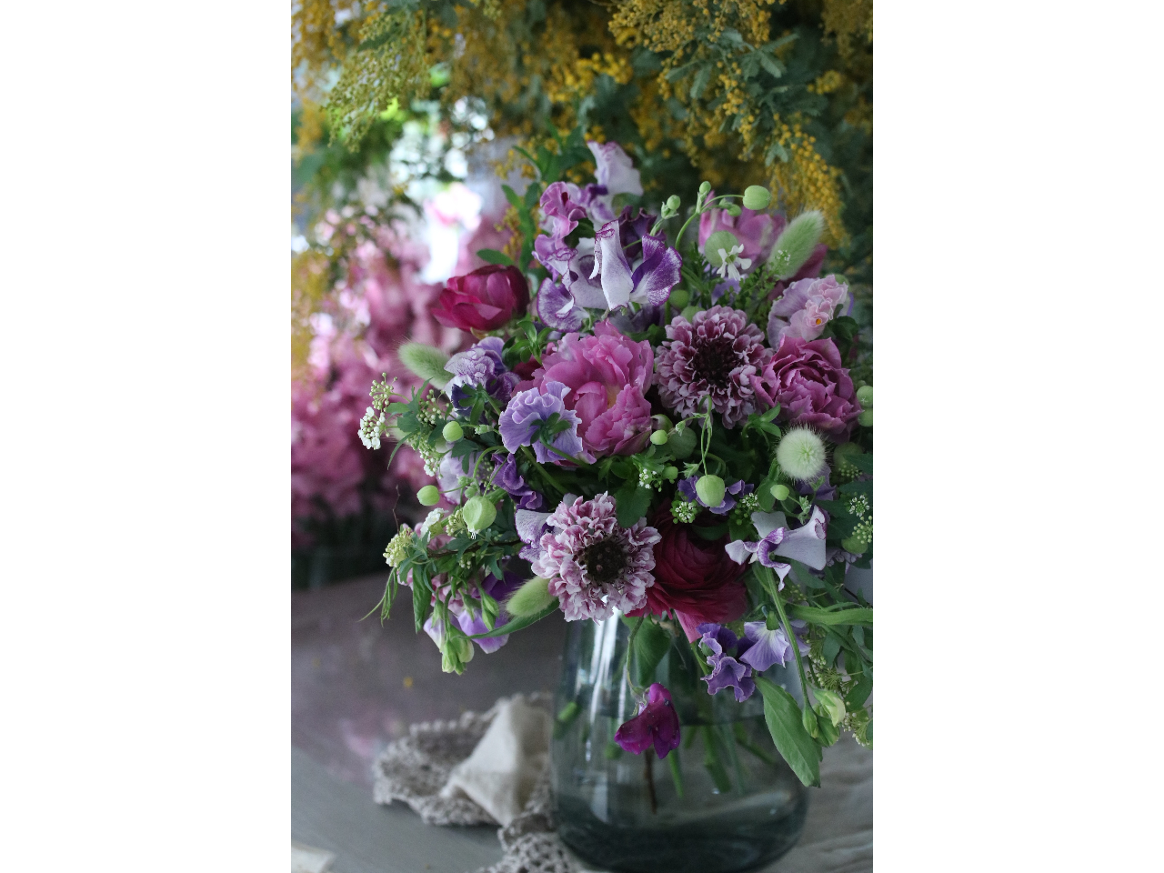 レッスンでは季節のお花を束ねる嬉しさ、楽しさをお花の経験がなくても感じていただける様なレッスンを毎月開催しております。