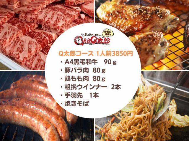 ★お好きな場所でBBQ★【定番!Q太郎コース】必要な機材と食材を現地へお届け!