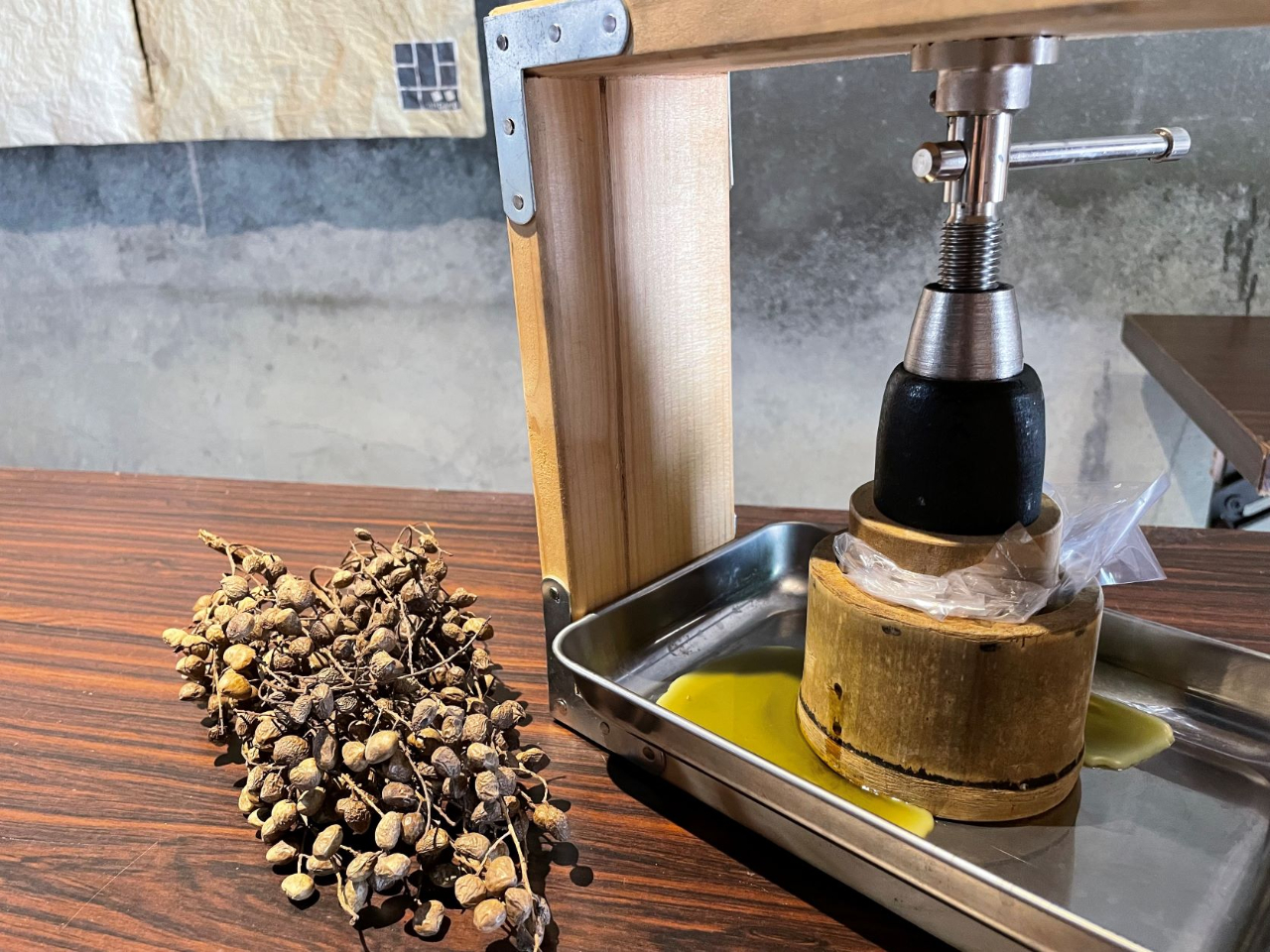 実を潰して、蒸して、手づくり圧搾機で蝋を搾る…全工程を1から体験していただけます。