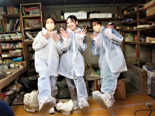 電動ろくろは雨合羽の上下着用物(持参してください)
