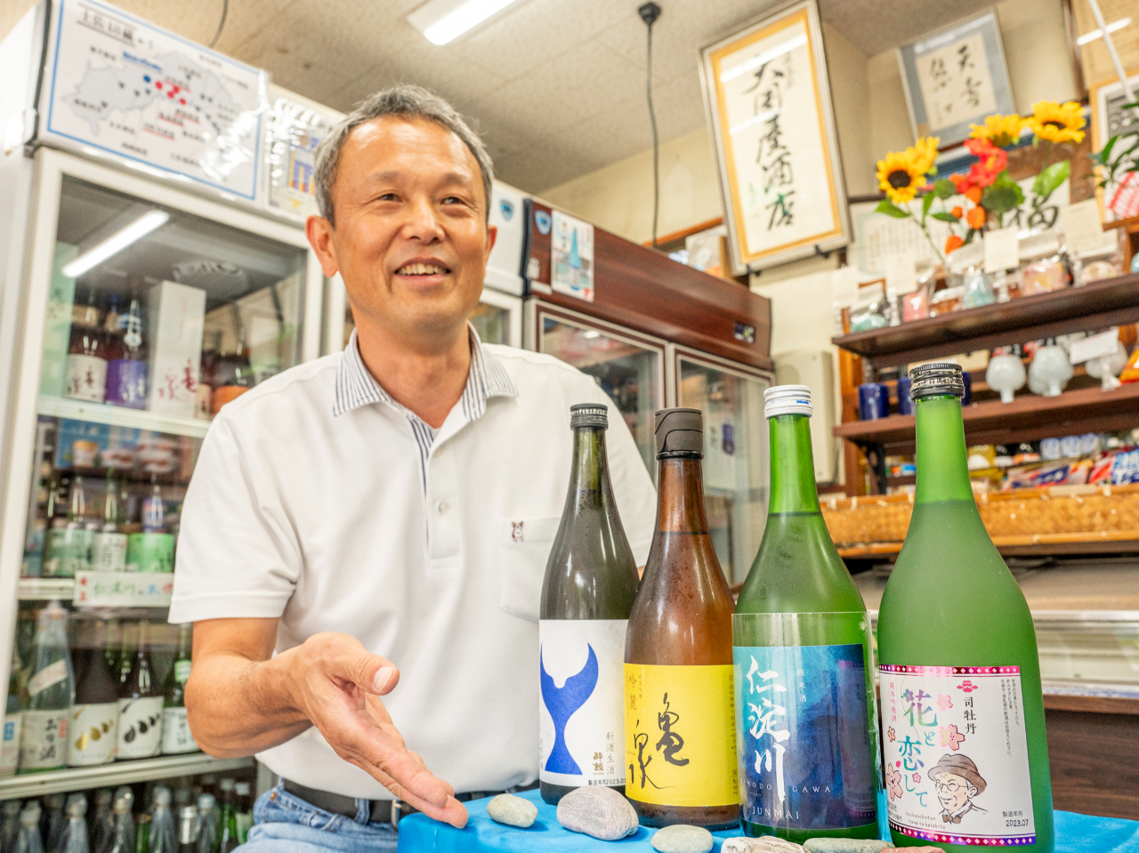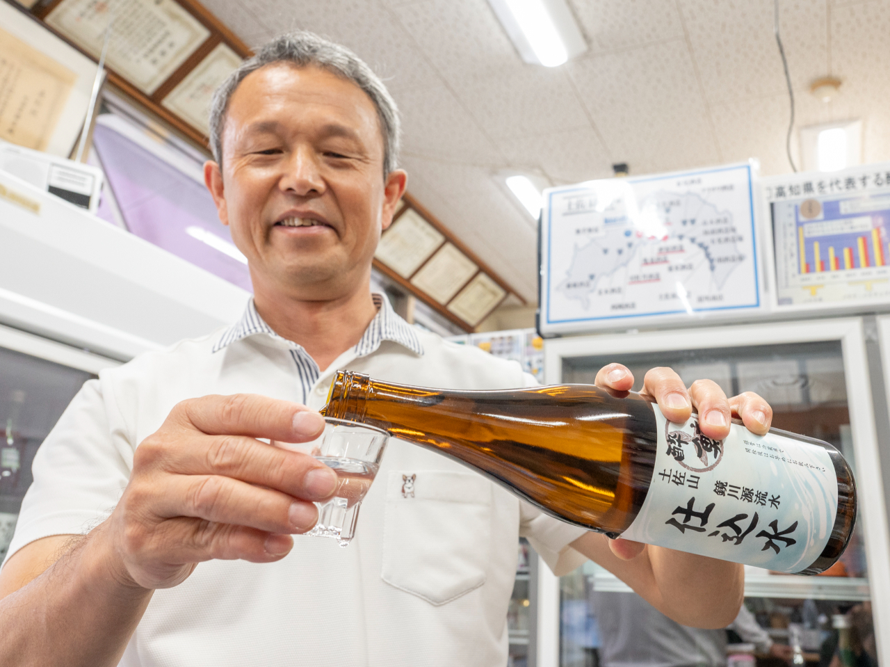 ご旅行の帰り際などにお土産のお買い物でどうぞ!観光名所にも近い(仁淀ブルースポット「にこ淵」など)、仁淀川流域の地酒ソムリエ「大国屋酒店」で、土佐酒アドバイザーと日本酒を選ぼう!