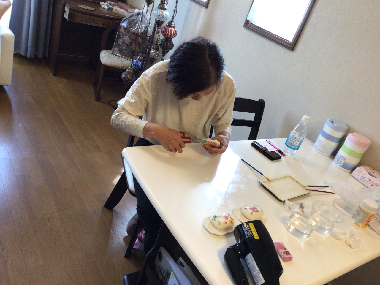 お部屋には先生の作られたキャンドルやペーパーデコパージュの作品、トルコランプなんかも並んでおりハンドメイド・インテリア好きには堪らない空間でした!