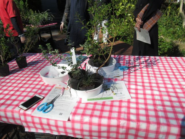 小振りのものから、枝が曲がり市場に出回らない個性溢れるものまで、マートルの苗の中から、ご自分のお気に入りをみつけていただくところから苔玉づくりがスタート!