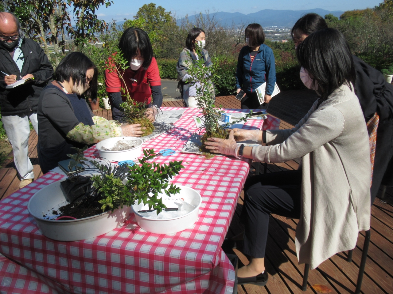 体験終了後は、造園業界では歴史あるカイヅカイブキの並木道や珍しい樹木等を紹介しながら苑内を散策いたします。(所要時間45分)